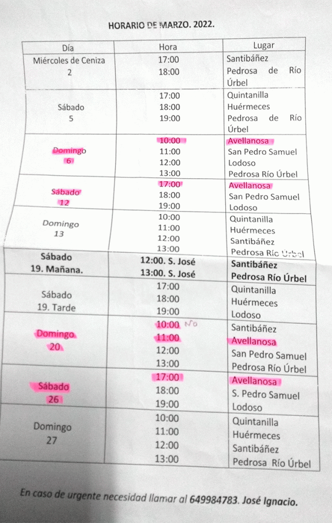 Misas del mes de abril