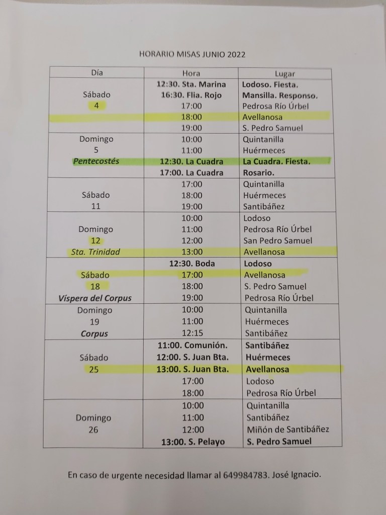 Misas del mes de Junio