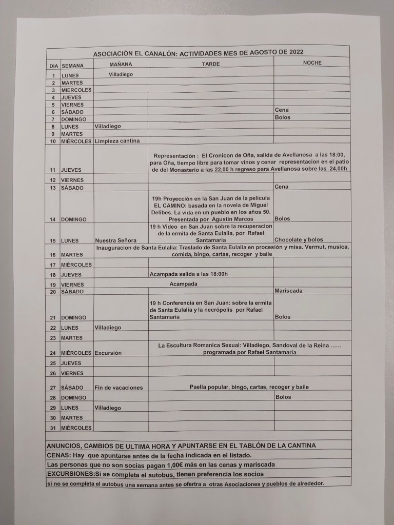 Buenos días, os envió las actividades de esta verano, es necesarios que os apuntéis cuanto antes a la comida de Santa Eulalia, para ir preparando la intendencia.