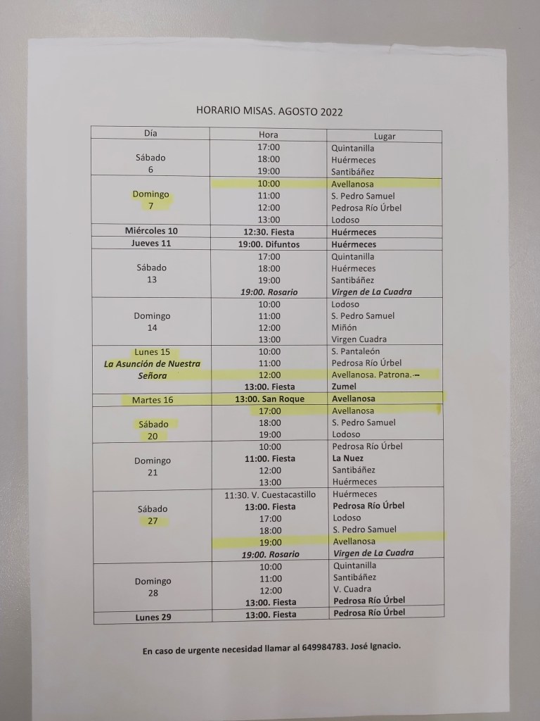 Misas del mes de Agosto