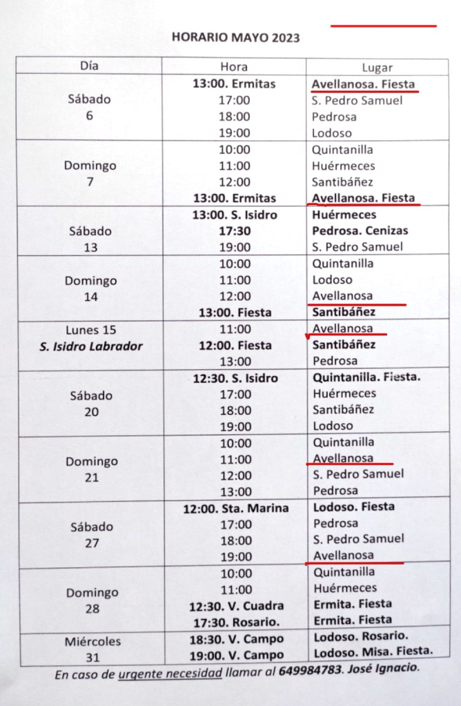 Detalla abajo misas del mes de Mayo 2023